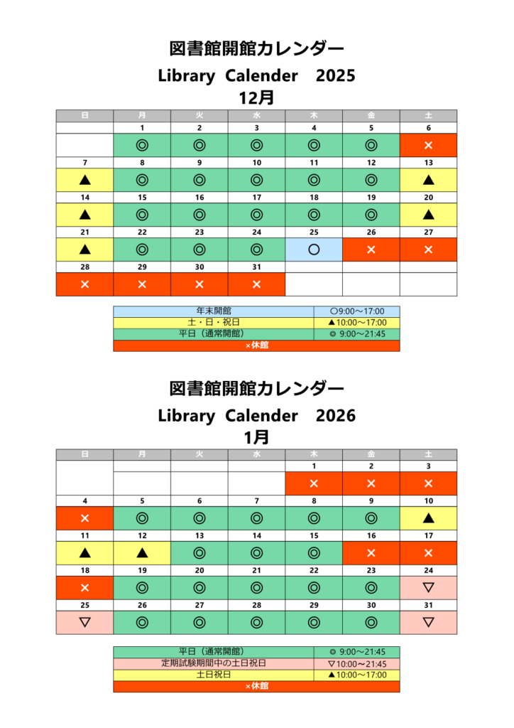 いつも図書館活動にご協力いただき、ありがとうございます。 図書館は、年末年始の開館スケジュールを下記のとおり予定 しております。 ご理解とご協力のほど、よろしくお願いいたします。